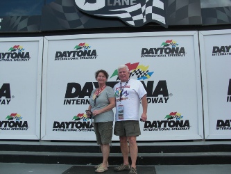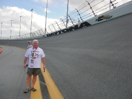What a great birthday present. Missy and I spent two weeks in Daytona in January - February this year. The driving experience has been on my “Bucket List” for quite a while. She surprised me with this and a VIP tour of the speedway grounds. In all I got to drive for 16 laps. Each lap is two and a half miles. At 150 miles per hour you can get your heart beating faster and adrenaline flowing. There was an instructor driver in the passenger seat and the first two laps were used just getting the feel of the car and the line of the track - only about 130 MPH. As I got more comfortable with the car and track, I ran pretty consistent 150 MPH laps. Fastest speed of 165 MPH.